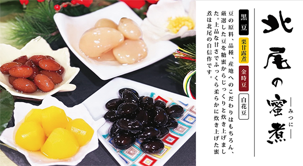 「お豆さんの炊いたん」ふっくら炊いた北尾の自信作 |
